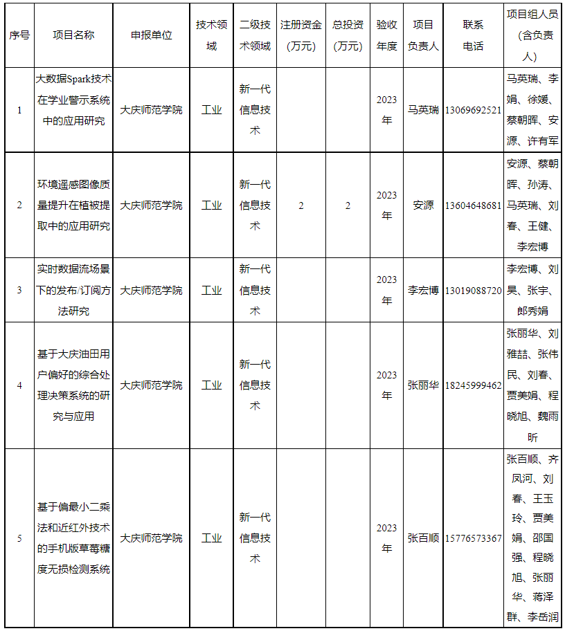 推荐申报2021年大庆市指导性科技计划项目汇总表