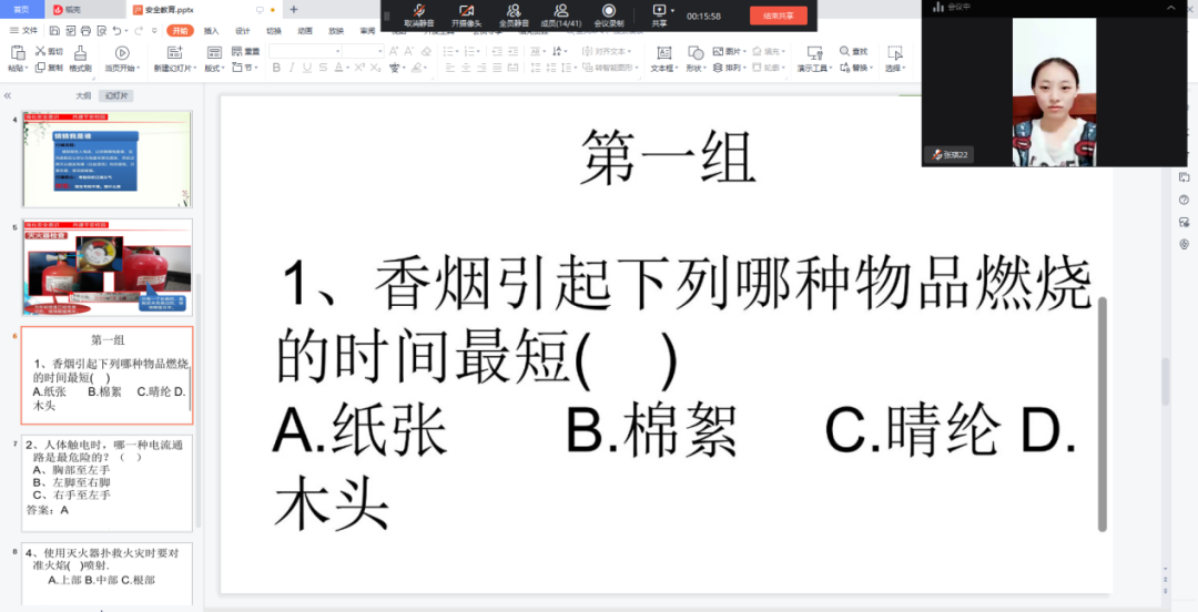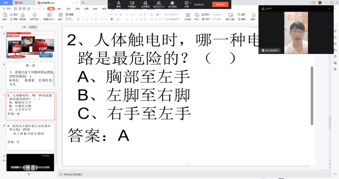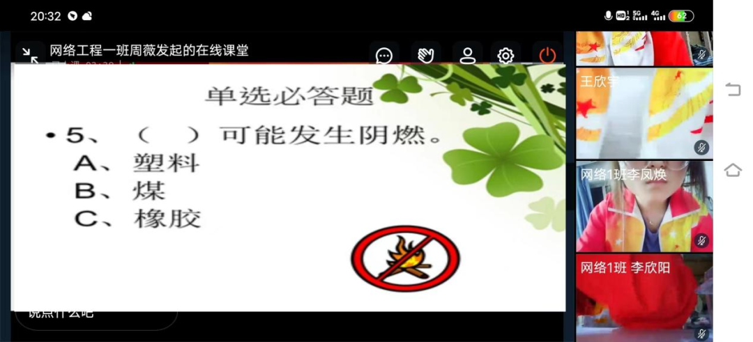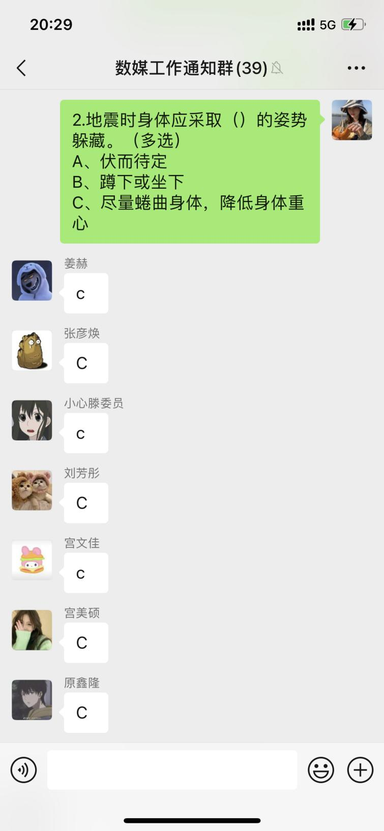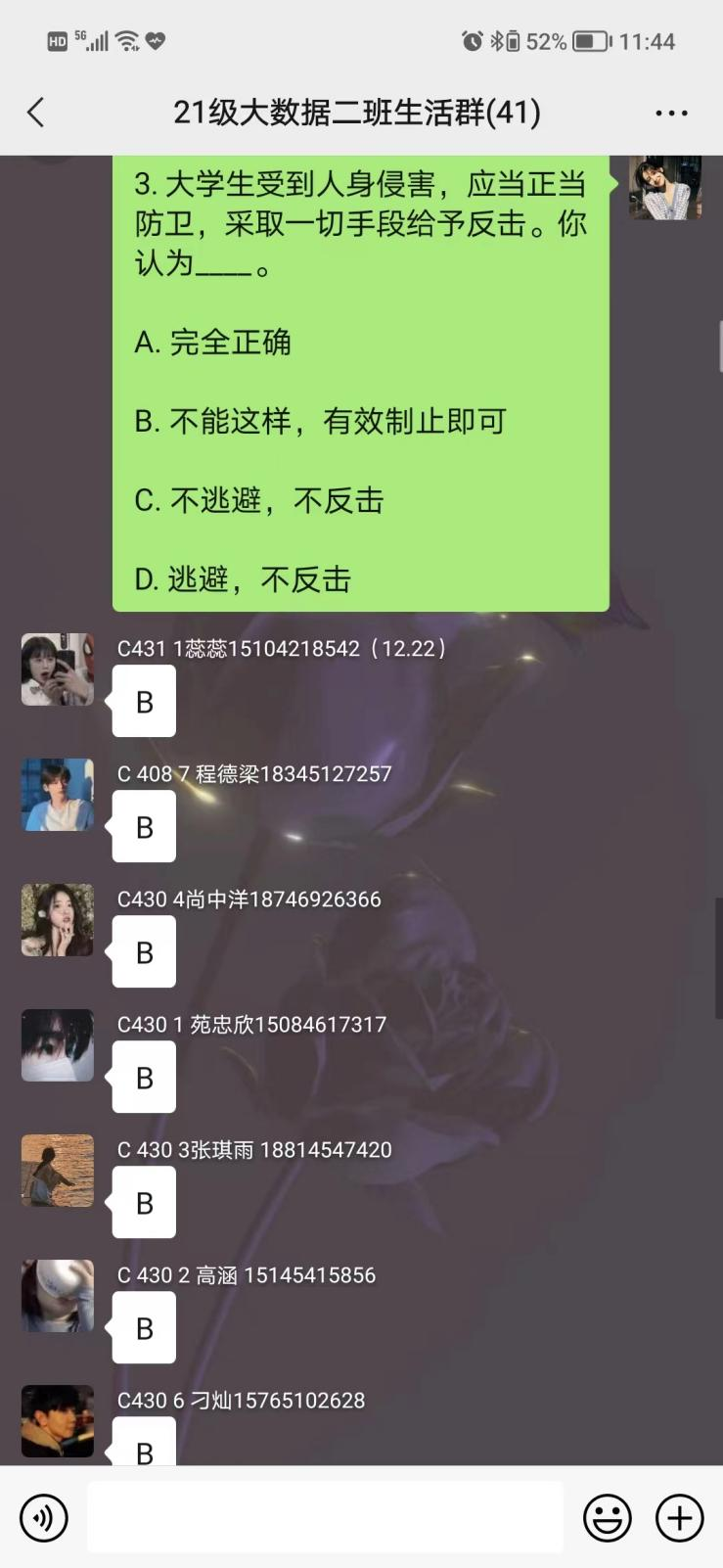 各班级负责人收集了有关安全教育的竞猜题并发布在班级群里,同学们以抢答的方式来回答问题。