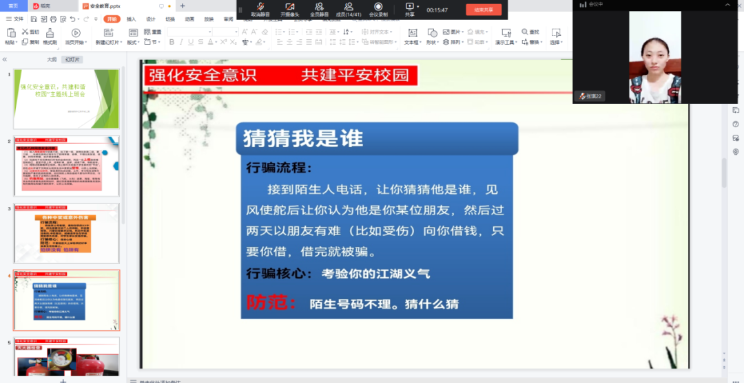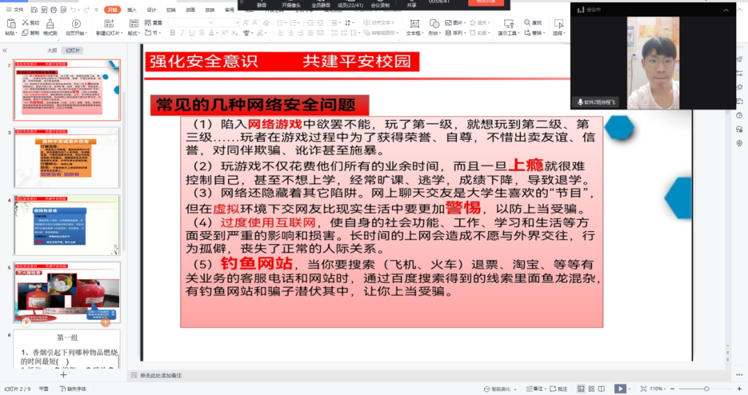 一、开展以“强化安全意识,共建和谐校园”为主题的线上班会活动