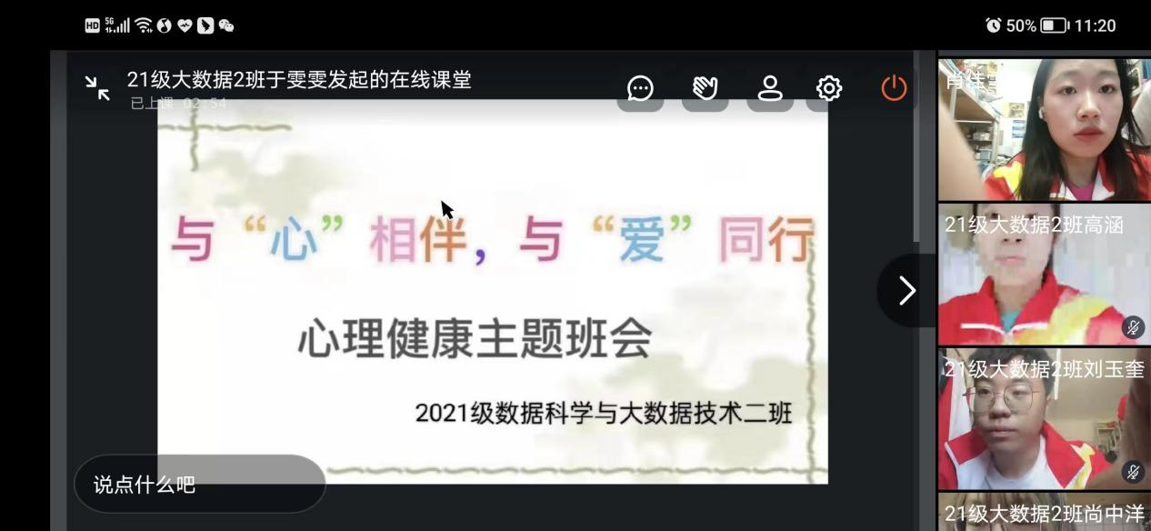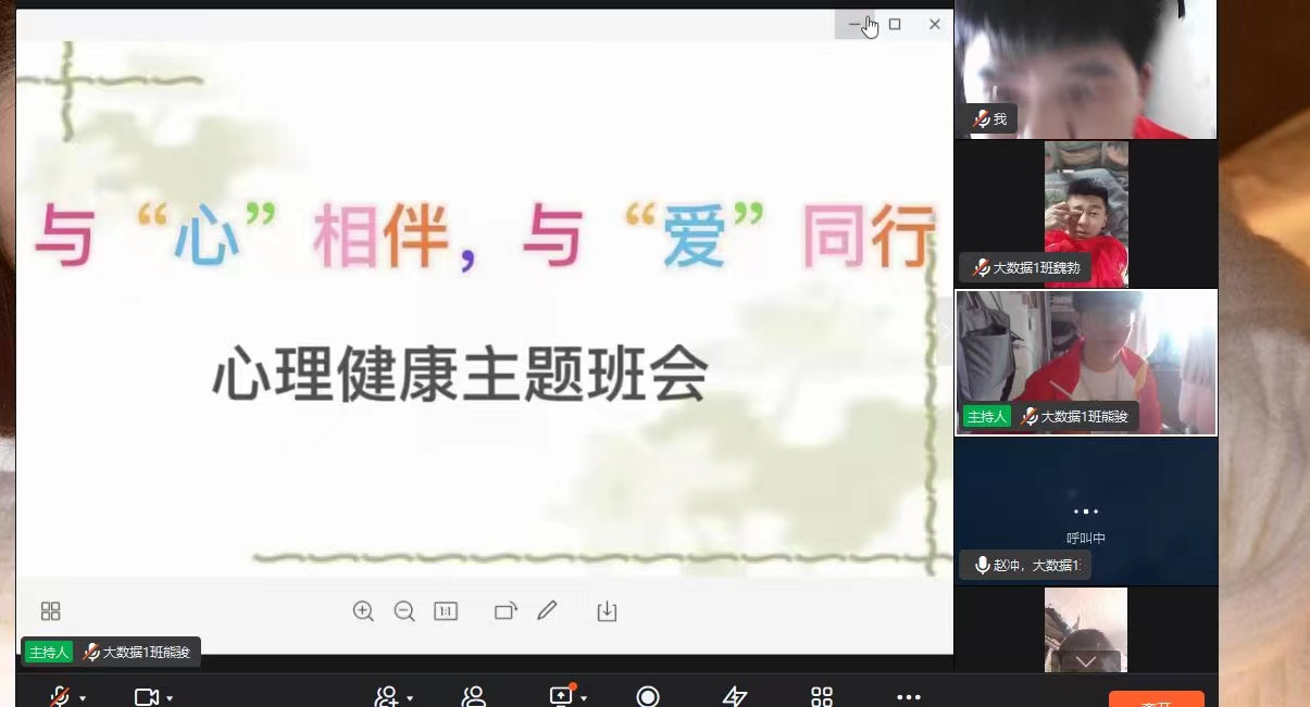 5月25日是全国大学生心理健康日,其谐音为“我爱我”,提醒大学生们要“珍爱生命,关爱自己”,从关爱自己,接纳自己,到关注自己的心理健康和心灵成长,提高自身心理素质,进而爱别人,爱社会。为此,威廉希尔官网开展了“与‘心’相伴,与‘爱’同行”心理主题云班会,为同学们讲解心理健康的重要性,大家也在班会上积极献言,分享自己对于心理健康的理解。