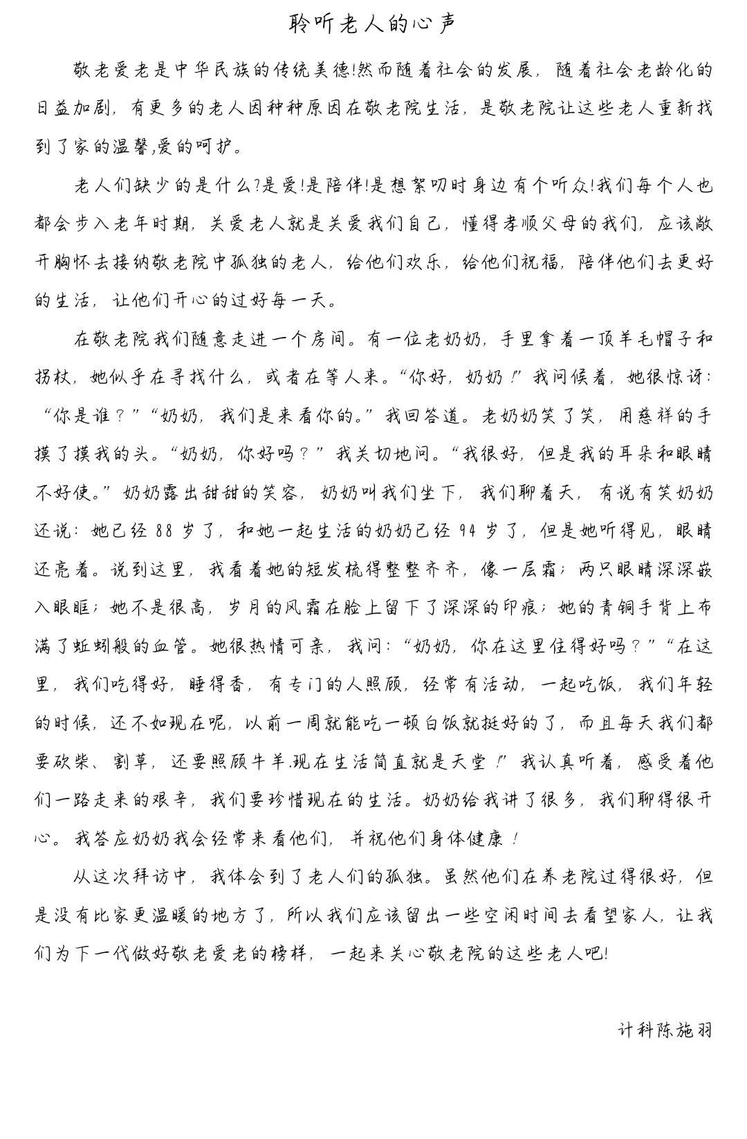 四、倾听老人心声的心得体会