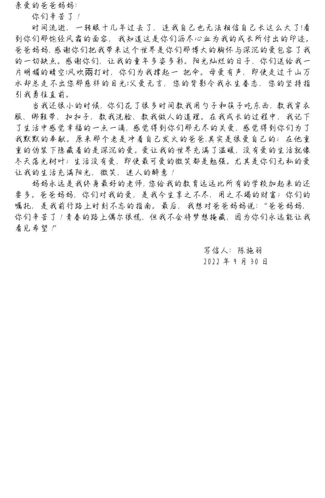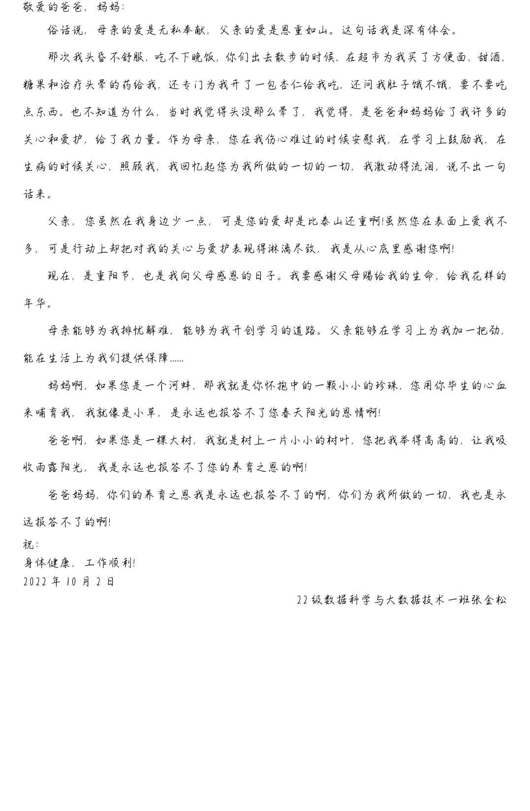 不紧不慢的时间从指缝中悄然流过,落在爸爸妈妈的发丝中,爷爷奶奶的笑纹里,雕刻出岁月的痕迹。“沙岸菊开花,霜枝果垂实。”今天是农历九月初九,又是一年重阳时。在这一个特殊的日子,威廉希尔官网的同学们也有一些“话”想对家中长辈与父母说。