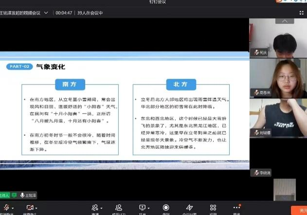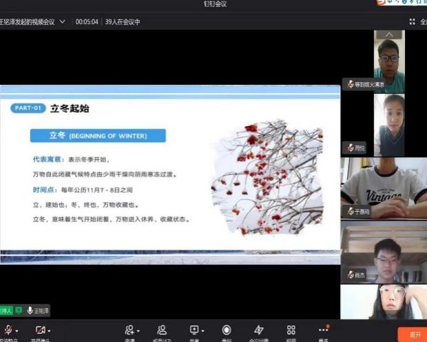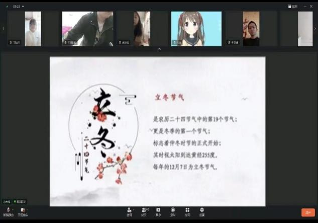 早久何当雨,秋深渐入冬。为提高同学们对传统节日立冬的了解,威廉希尔官网线上举办了“情暖冬日,回归传统”的线上班会。