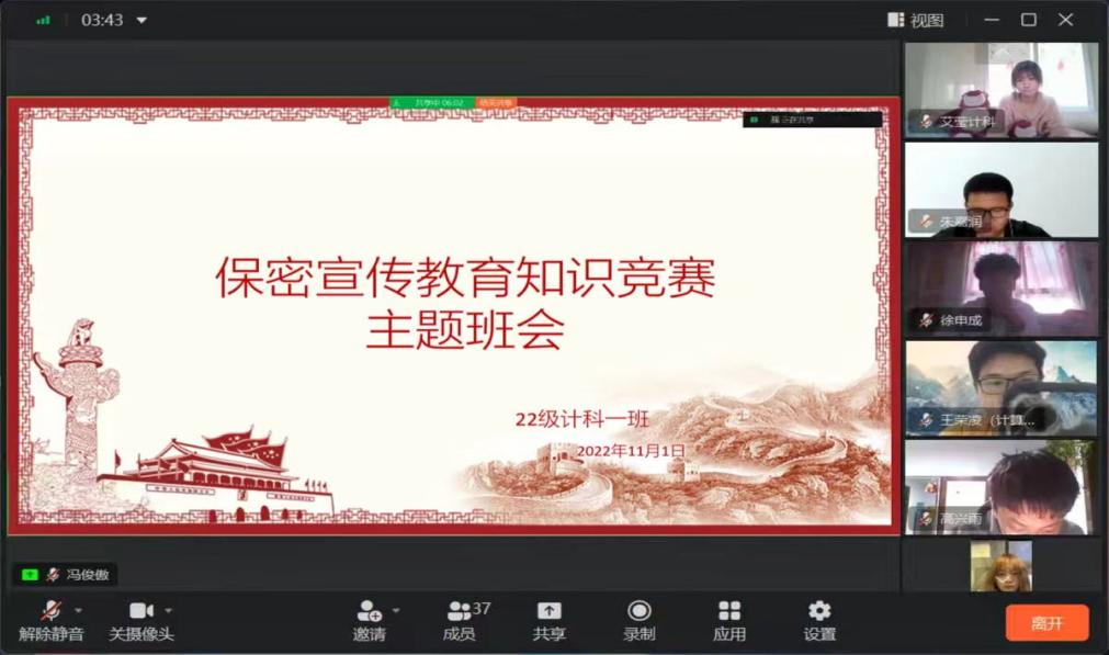 保密意识永存,国家安全不朽。为进一步提升广大学生的安全保密意识,增强保密观念,加强保密法律知识的普及和宣传教育,引导学生主动维护自身的利益,提高自我防范能力。威廉希尔官网各班组织线上主题班会,此后刘烁老师以会议的形式为同学们播放保密宣传片,并再次强调保密的重要性。