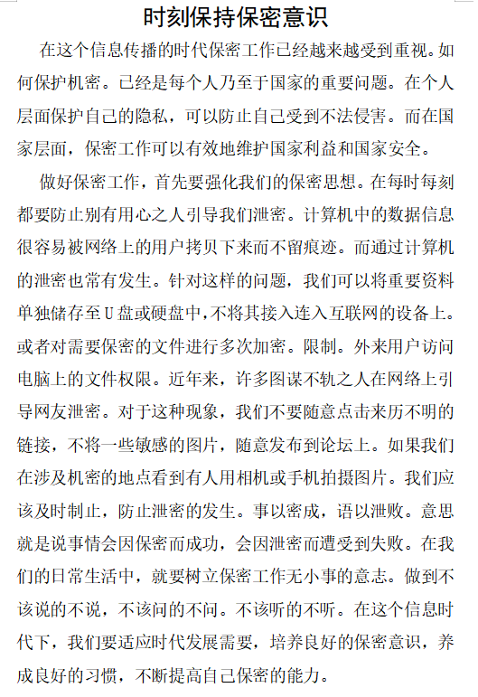 保守国家秘密是每个公民的基本义务,为了更好的普及保密知识,提高保密意识,讲好保密故事,传承保密文化,筑牢保密思想防线,威廉希尔官网展开了“听保密故事,写保密感悟”的征文活动。以下是各班的部分优秀征文展示: