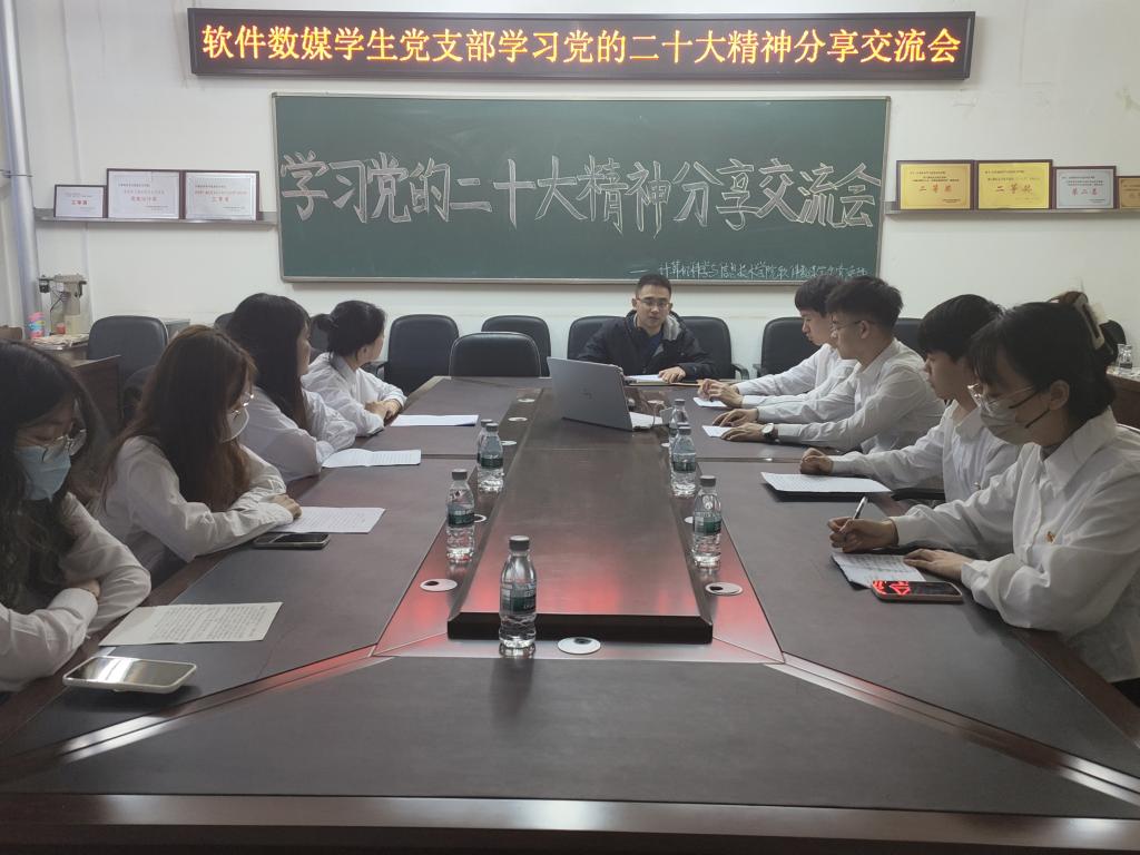 观看过后,由苏鸿鹏老师和杨小丽老师分别带领我院两个学生党支部进行了心得交谈会,再度重温了党的二十大精神。在此次交流中,党员干部们积极发言,结合自身角度谈节目观后感受,从未来方向讲发展思路,以自省姿态寻成长道路。老师在观看节目的同时,也无时无刻的在思考实际问题,结合身为党员的经验,与同学们所反映的情况,为大家指出问题的根本所在,并对每个人提出了指导意见,这些意见不仅是对同学们生活工作的指引,也是对同学们党性的提升和锤炼。