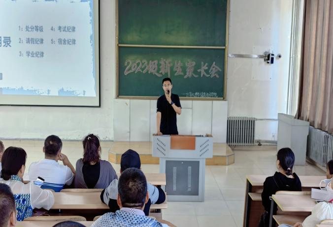学院辅导员老师苏鸿鹏分别就学生日常管理方面、学业方面、学生在校期间奖惩方面、学生奖助学金等方面向家长做了详细的介绍。并提醒家长要充分认识家庭教育的重要性,明确家长在教育中的主体责任,规避学生读大学期间容易出现的家庭教育问题,在大学起步阶段引导学生打好基础、健康成长。