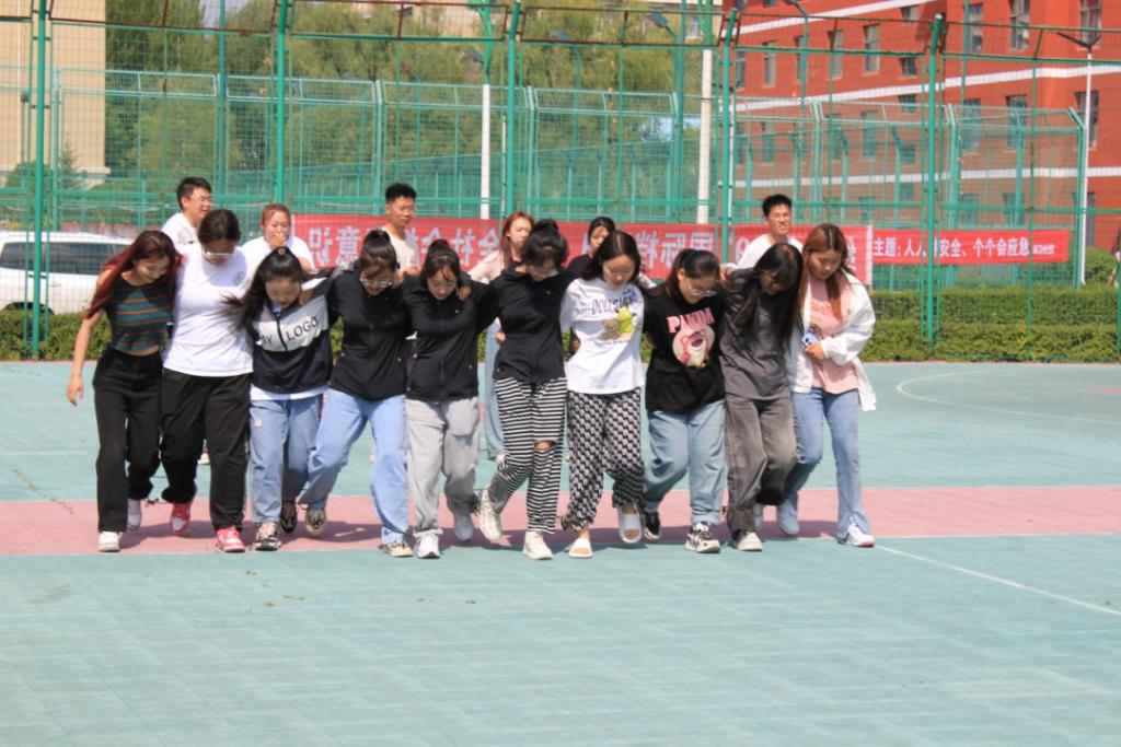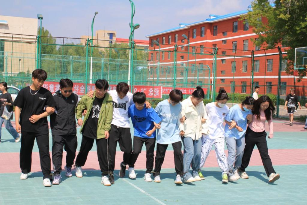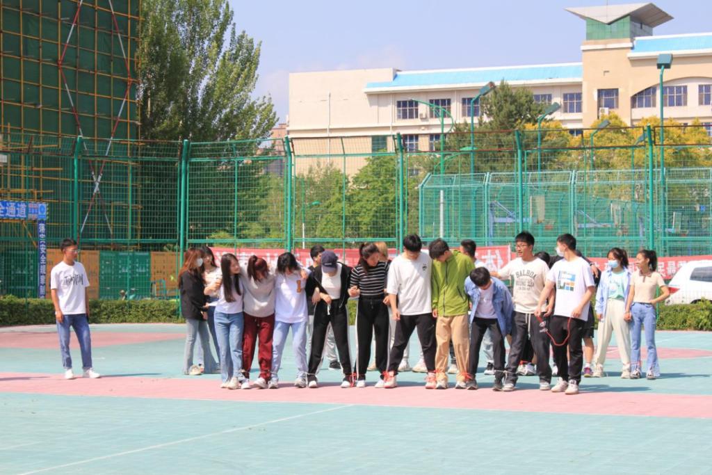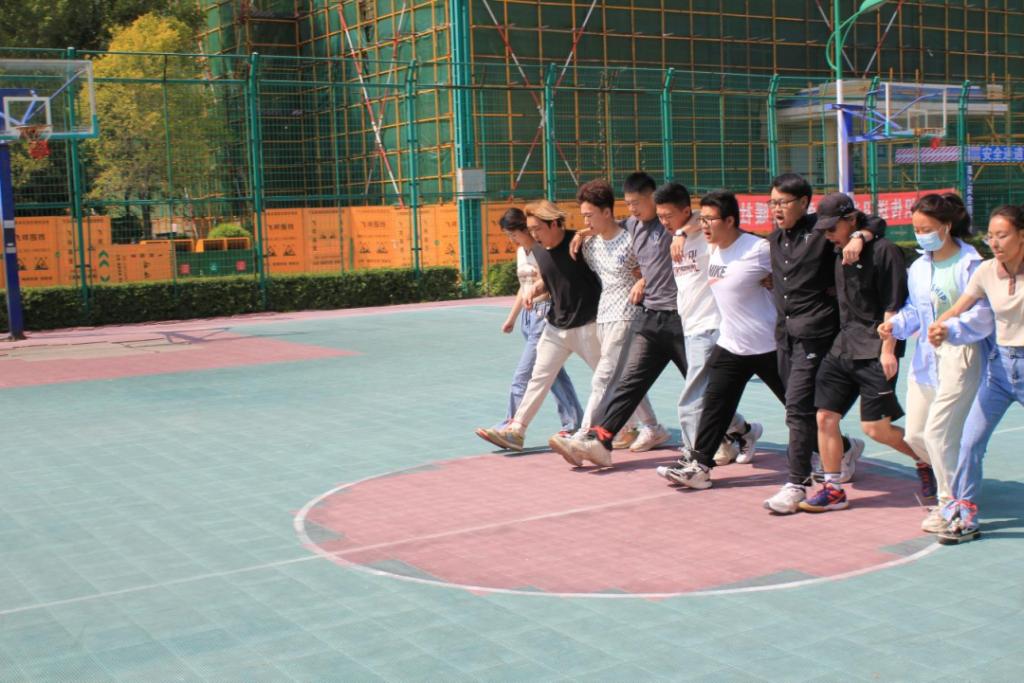 十人十一足是对整个团队的考验,它不仅考验团队的速度,也考验着团队的默契。同学们带着坚定的眼神喊着有力的口号,十个人好像融为了一体,迈着整齐有力的步伐,向终点一步一步靠近,场外观众为参赛队伍激情呐喊。