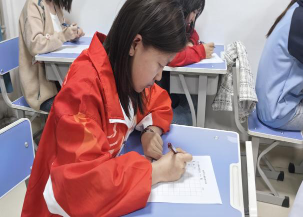 各学院自行举办预赛,共推选31名选手进入复赛。复赛过程中,选手们都屏息凝神、沉着思考、用心书写,一撇一捺中彰显着沉稳与自信。比赛结束,由评委进行现场打分并进行加时赛。通过最终角逐,13名选手脱颖而出进入决赛。下面让我们聚焦复赛现场,一睹选手风采。