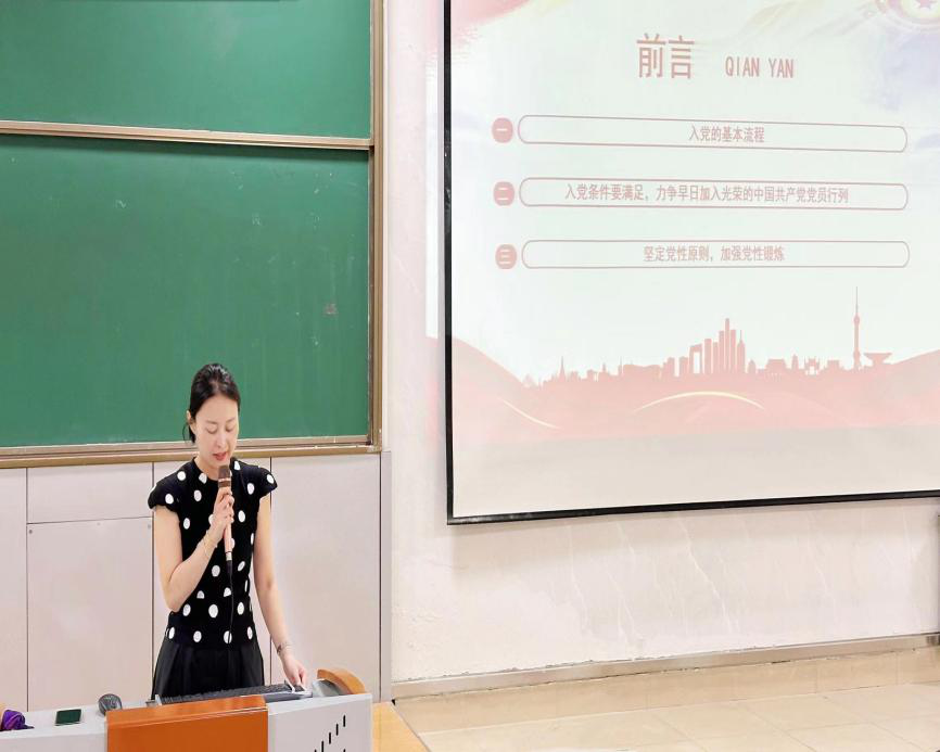 大会上,苏老师围绕“为什么要入党,入党程序,入党后要做什么”等内容开展入党启蒙,并详细介绍了入党的流程和标准,强调其严格性和规范性,引导新生端正入党动机,树立正确的理想信念。随后,刘老师介绍了入党的条件、发展党员的标准和原则以及阶段历程等。她鼓励新生要强化思想淬炼,合理规划大学生活,主动参与创新创业、学科竞赛等活动,不断突破“小我”,成就“大我”,努力把个人的理想追求融入党和国家事业之中。