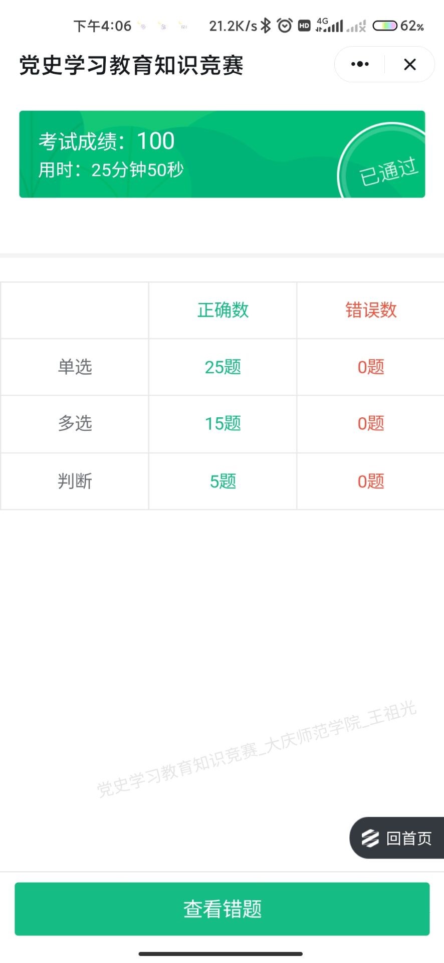 此次活动采用线上答题的形式,通过钉钉下发测试题,在规定时间内完成作答。系统随机抽取25道单选题、15道多选题、5道判断题。在学院各学生会部门的带领下,同学们积极参与,保质保量的完成了本次党史答题活动。展现了当代大学生积极向上,爱国爱党的先进风气。此次活动通过党史答题来回顾中国共产党从成立到发展到壮大的历史进程表达了对建党一百周年以来的丰功伟绩的传颂,进一步弘扬了中国共产党党员的先进事迹和优良品质。