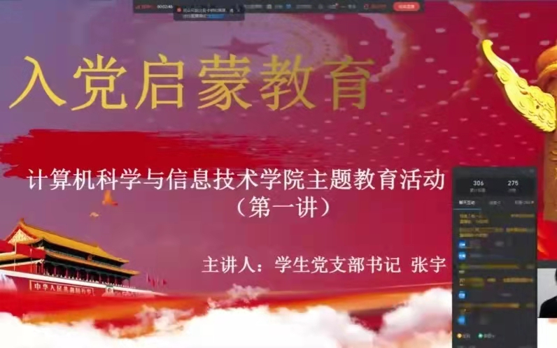 为了增进新生对党的认识,引导新生积极向党组织靠拢,提高思想觉悟,激发广大新生爱党爱国热情,端正入党动机。2021年10月8日,威廉希尔官网召开2021级新生入党启蒙教育线上钉钉会议,会议由威廉希尔官网学生党支部书记张宇主持,2021级全体同学参加。