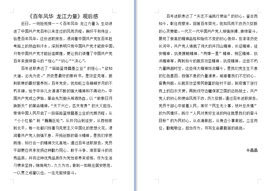 会议结束后,党员们对此次视频学习书写了观看心得: