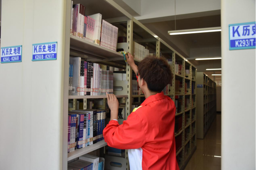 在志愿服务过程中,大家听从图书馆老师安排,三两人自由结成一组,分工合作。学生党员们擦拭书架上面的灰尘,规范整理图书,利用工具准确将每类书籍运到对应的指定位置,动作干净麻利,充分体现了学生党支部成员的先锋模范带头作用和志愿服务精神。同时,同学们互相帮助,不仅提高了工作效率,更体现了威廉希尔官网学子团结友爱的精神。