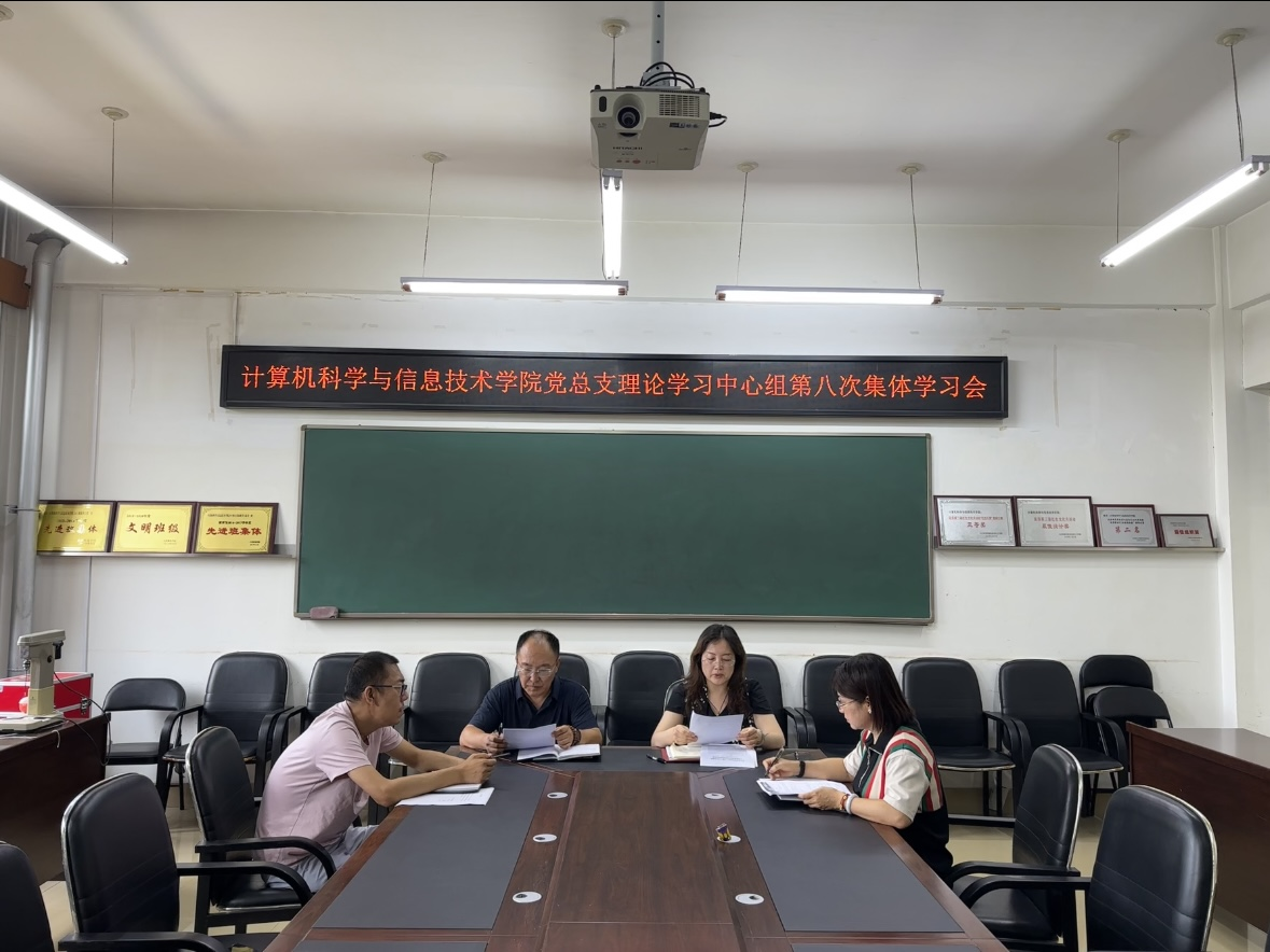 8月30日,我院在计算机楼417会议室召开了党总支理论学习中心组第八次集体学习会,中心组成员参加学习,会议由党总支书记徐媛主持。